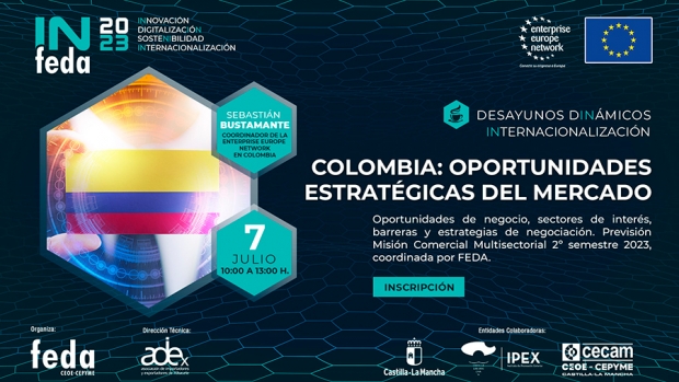 La Confederación de Empresarios de Albacete (FEDA), como miembro de la Enterprise Europe Network, organiza en su sede este desayuno el 7 de julio donde se analizarán las diferentes oportunidades comerciales en el país para cada sector. Para explotar al máximo estas oportunidades, FEDA está preparando una misión comercial multisectorial a Bogotá, del 26 de noviembre al 2 de diciembre de 2023.