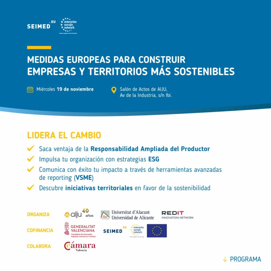 Organizada por AIJU, con la colaboración de SEIMED, la jornada reunirá a expertos y representantes de entidades de referencia que presentarán herramientas, proyectos y casos de éxito relacionados con la transición verde, la gestión responsable y la innovación sostenible.